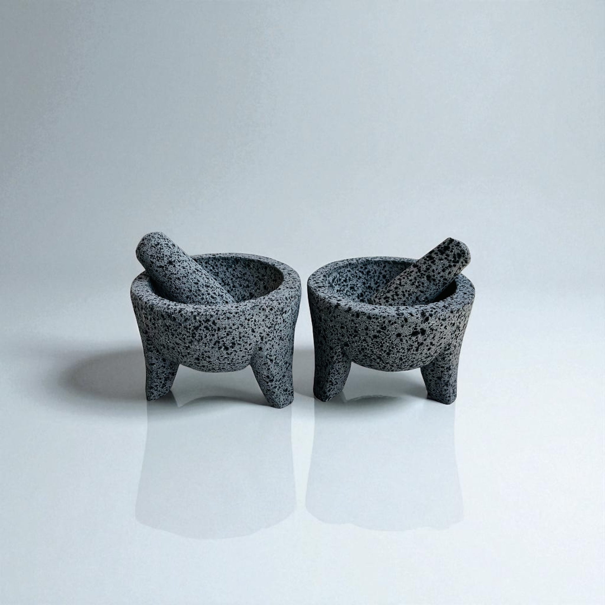 Disfruta de la versatilidad y tradición con este kit de molcajetes de 5 pulgadas, elaborados con piedra volcánica seleccionada y trabajo artesanal.