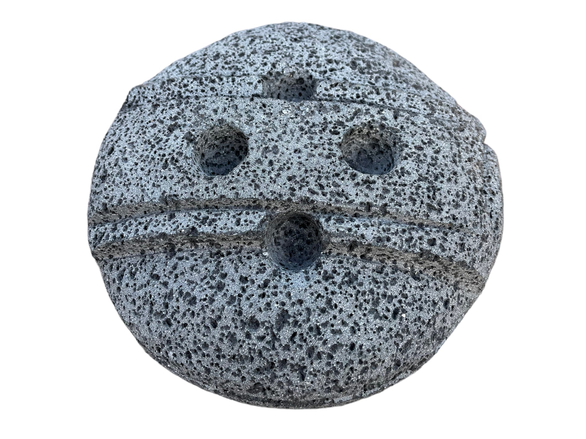 Cada molcajete es único: Puede presentar ligeras variaciones en forma o tonalidades marrones debido a la mineralización natural de la piedra. Un verdadero tesoro artesanal.