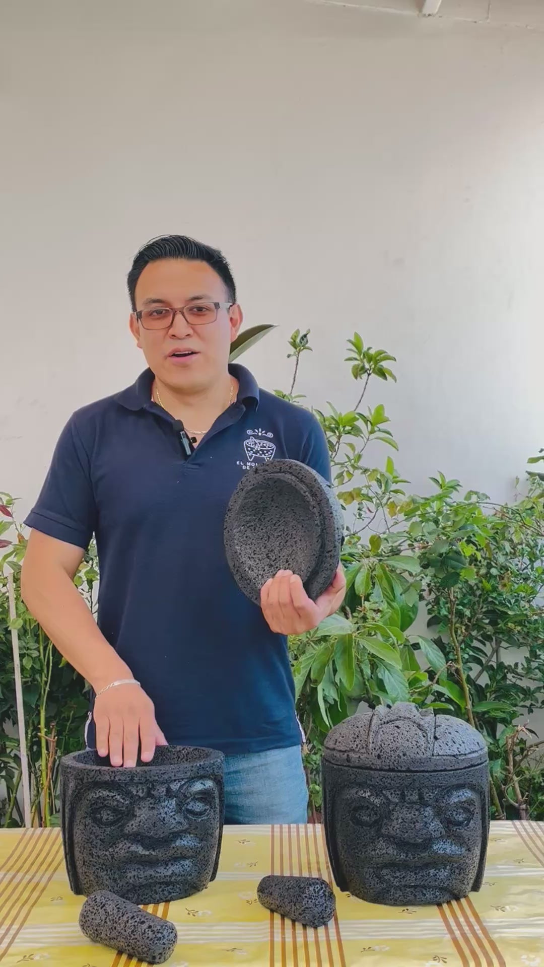 Tallado a mano en piedra volcánica, fusiona historia y funcionalidad en un diseño único que llevará tus preparaciones al siguiente nivel.